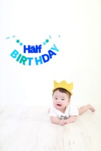 ほんわか癒されるハーフバースデーの撮影、