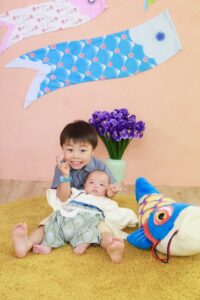 主役の赤ちゃんは泣き顔ですが、