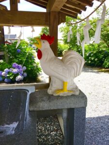 手水舎には鶏、