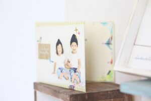 プリントの上に枠を貼るタイプではなく、