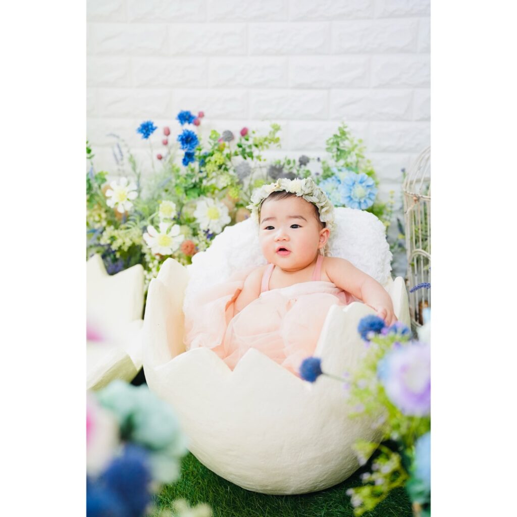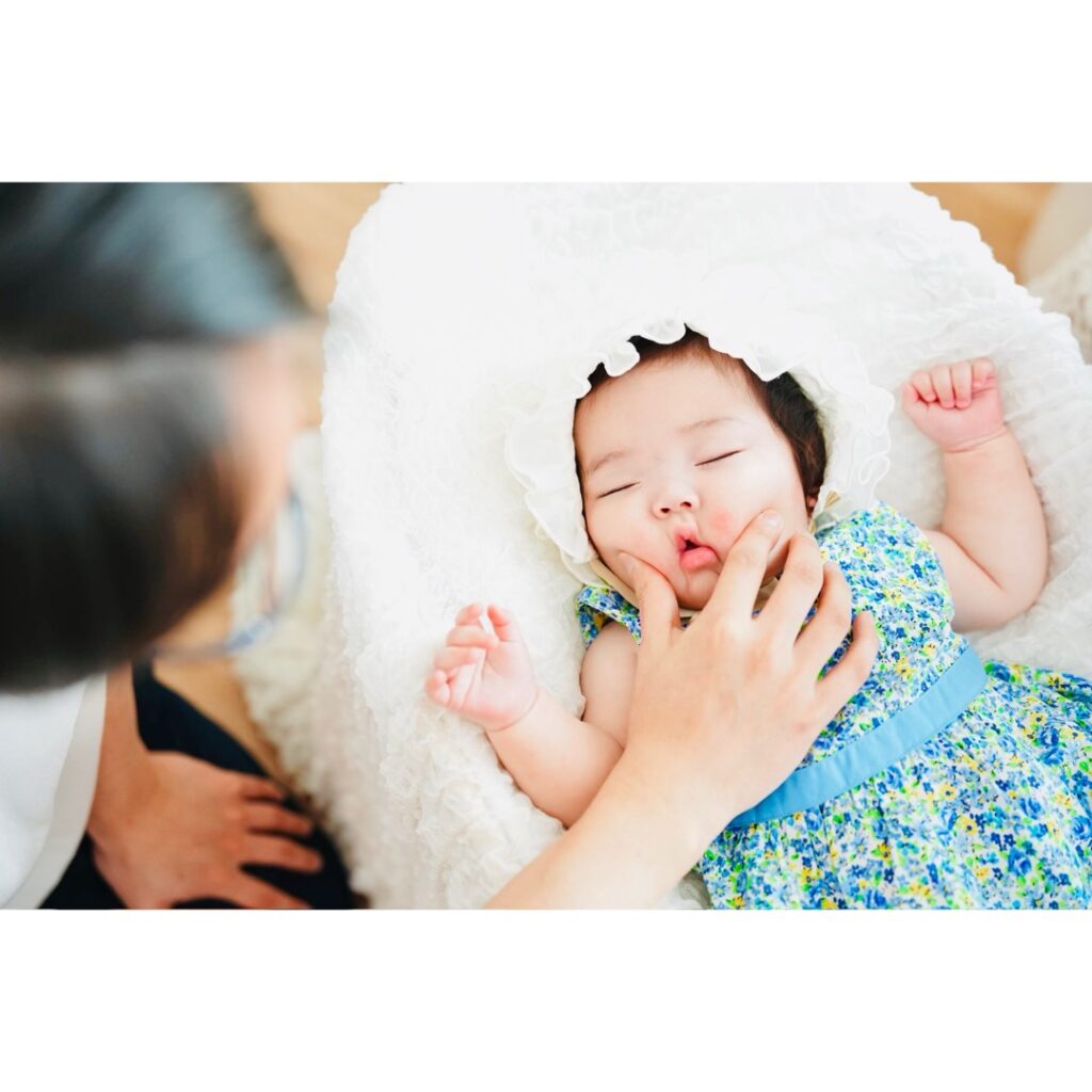 生後半年の赤ちゃんは表情が豊かになり、寝返りやうつ伏せ、おすわりなど新しい姿を見せてくれる時期です。写真に残すことで、1年後や数年後に「こんなに小さかったんだ」と振り返ることができます。 - 家族の絆を深める時間になる