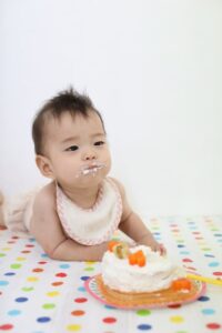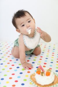 最初はパパママから食べさせてもらう事が多いです!